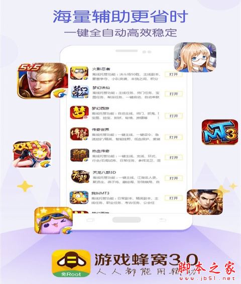 游戏蜂窝免root版是中国最大的手机游戏辅助脚本分享平台,聚合顶尖手游脚本作者,拥有丰富手游辅助脚本资源,支持市面上大部分热门手机游戏。全民飞机大战辅助、战舰少女R辅助、保卫萝卜3辅助、倩女幽魂辅助、热血传奇辅助等等,还有qq、微信抢红包辅助,游戏蜂窝官方除了提供手游一键任务,自动升级,挂机,签到补签等常规游戏特性功能外,还提供各种手游的电脑版模拟器服务,为手游用户提供永不离线的游戏体验,只有你想不到没有游戏蜂窝做不到!