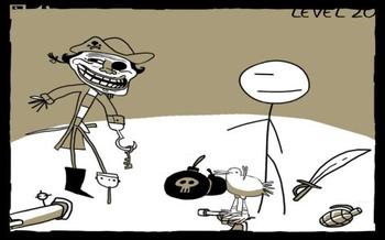 Trollface Quest 是一款被众多网友誉为【史上最贱的小游戏】。游戏的主角是一个火柴人,游戏思路不是常人所能想到的。所以,这款游戏考验的是智商与想象力。许多网友在玩之后,大呼伤不起,更有网友大呼要砸了手机。这款游戏中,火柴人的笑声也是亮点。这款游戏共有20关,很多人在第三关就被难住了。